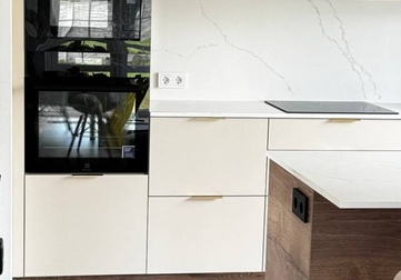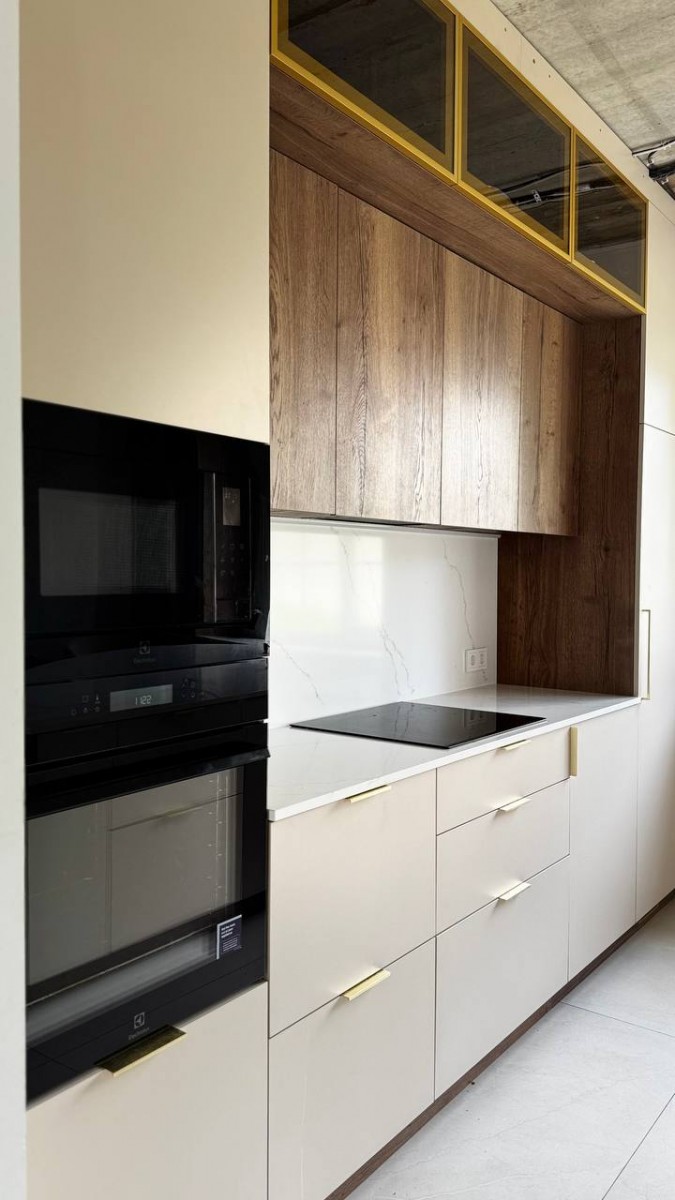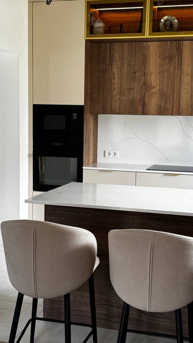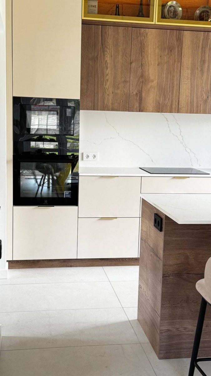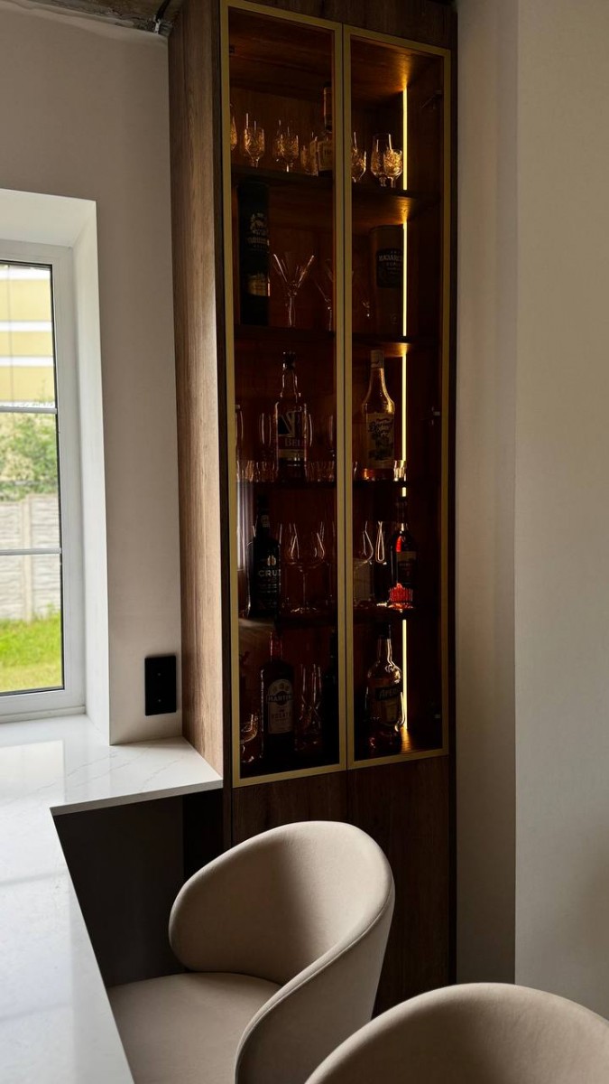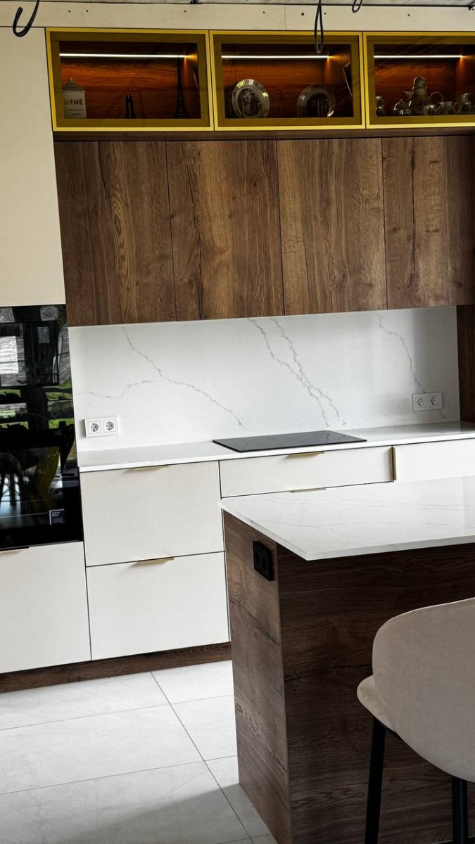 Мы спроектировали, изготовили и смонтировали прямую кухню с подсветкой и с кухонным островом для дома в Колодищах.