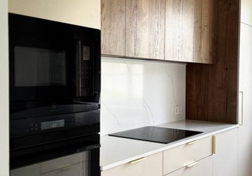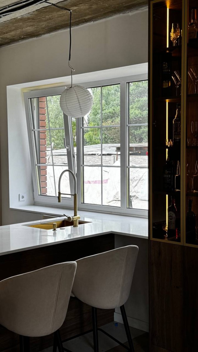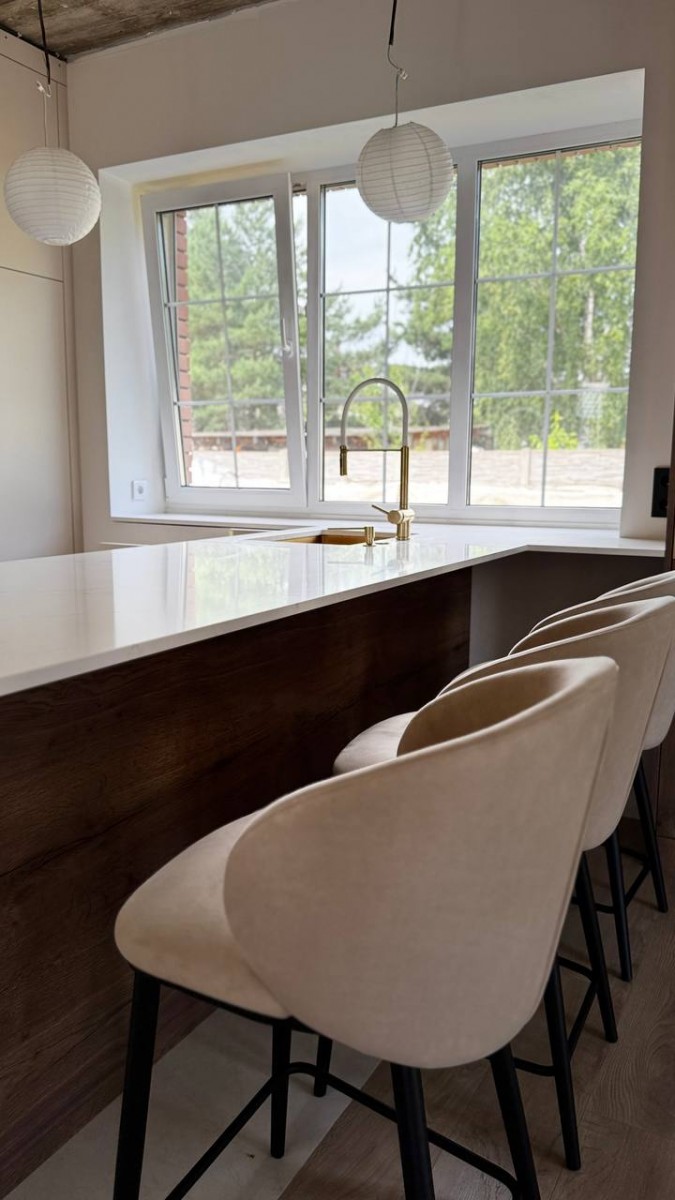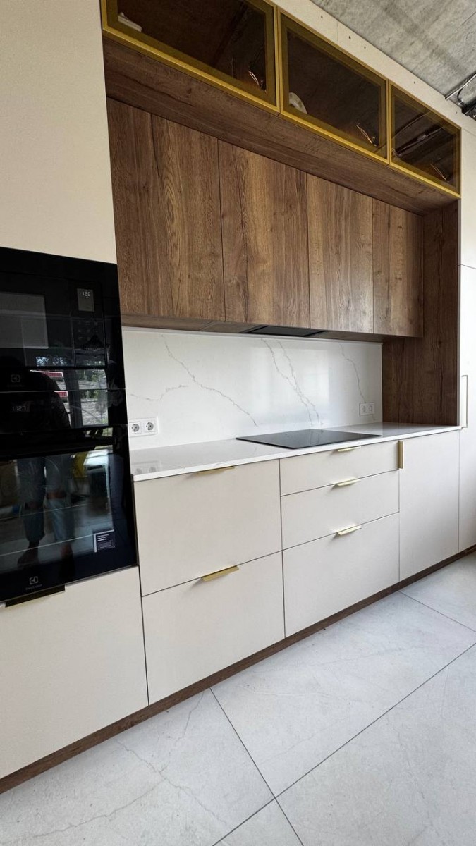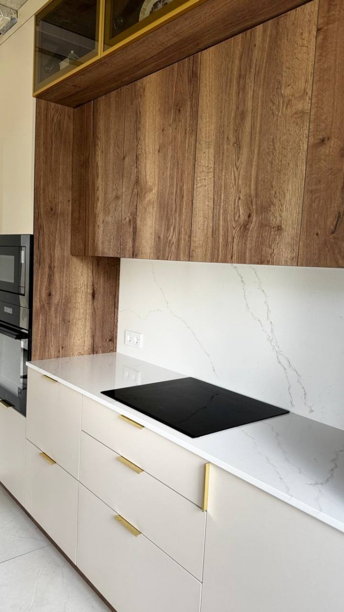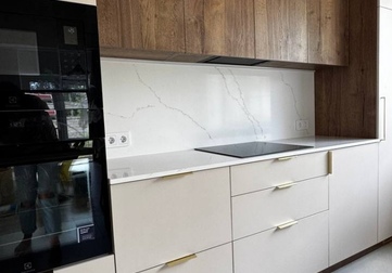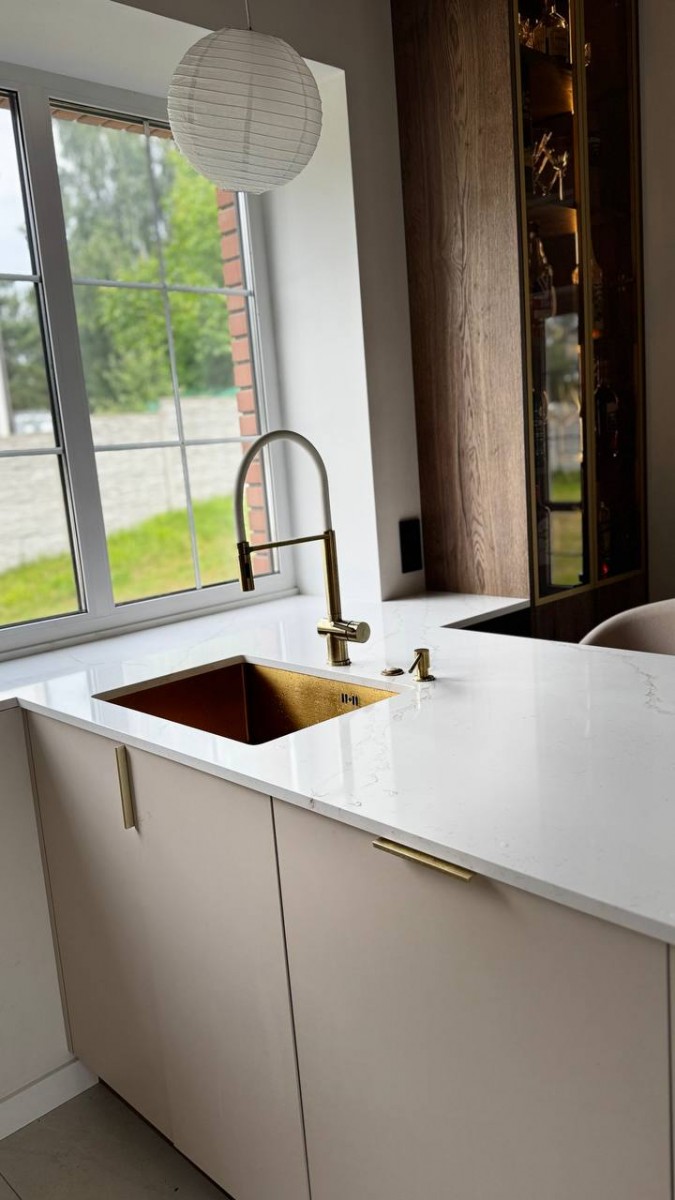 Мы спроектировали, изготовили и смонтировали прямую кухню с подсветкой и с кухонным островом для дома в Колодищах.